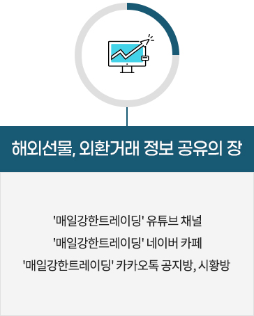 '매일강한트레이딩스쿨'은 국내를 넘어 해외까지 광범위하게 거래되고 있는 선물시장과 외환시장을 선도하는 No.1 트레이딩 교육회사 입니다. 현재는 다양한 분석툴을 기반으로 개인투자자들이 '수익을 낼 수 있는' 방향성을 제시하고 있습니다.